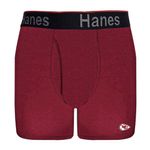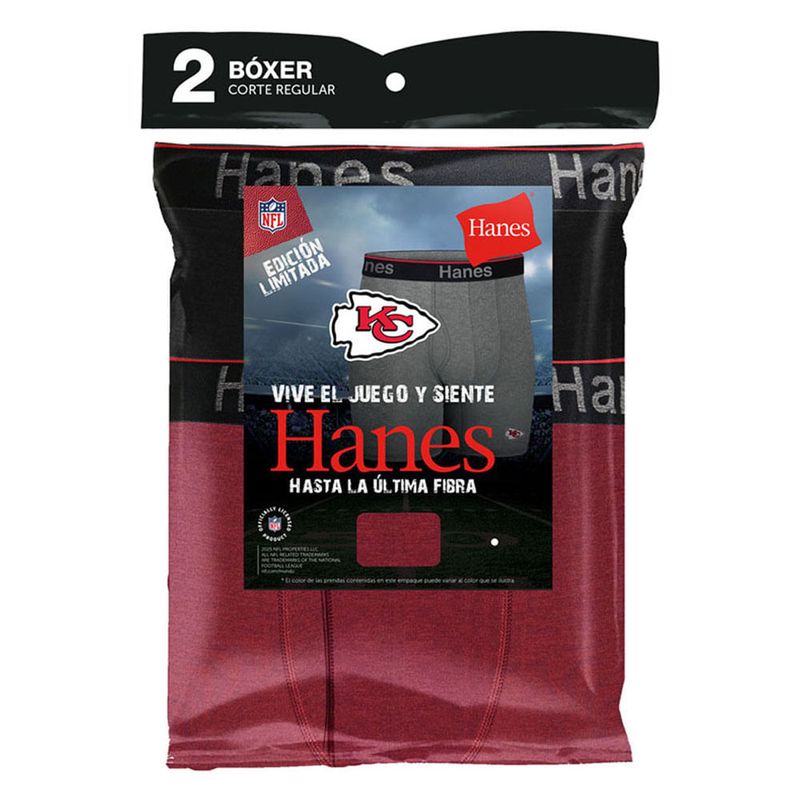 ¡SE PARTE DEL JUEGO CON LA NUEVA COLECCION NFL! Los Bóxers Brief con Soporte Anatómico Perfecto de Hanes de Kansas City Chiefs que son suaves, elásticos y repletos de características de rendimiento se convertirán en tu nueva opción favorita.